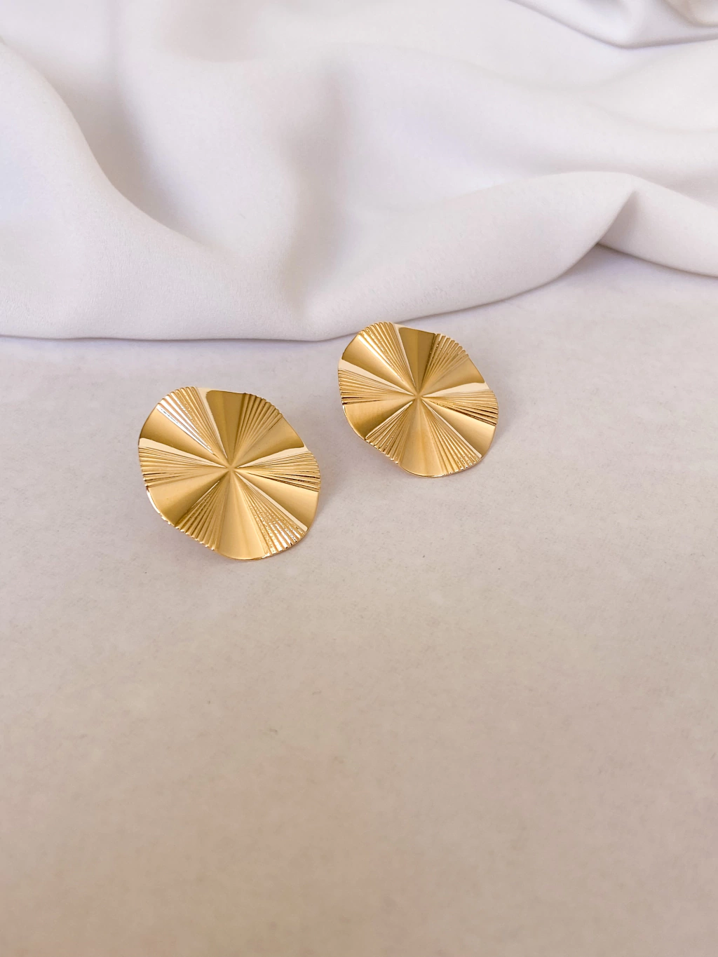 Brinco dourado redondo texturizado.
